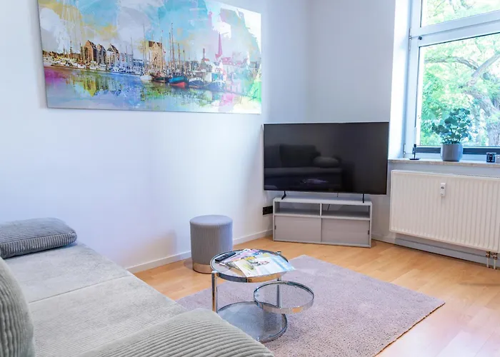 Volkstheater Rostock befindet sich etwa 1 km von dem der 50 m^2 großen Ferienwohnung Cityflair entfernt und gehört unter anderem zu den beliebtesten touristischen Zielen. Das 1-Zimmer-Apartment bietet WLAN im ganzen Gebäude.